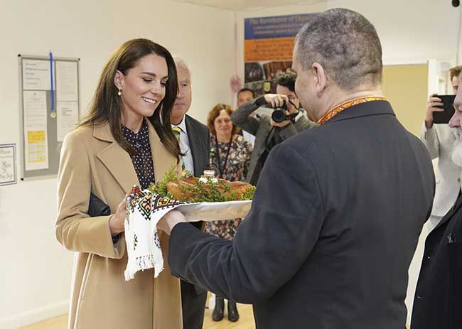 Upon arrival, the Princess of Wales was presented with a traditional Ukrainian cake.