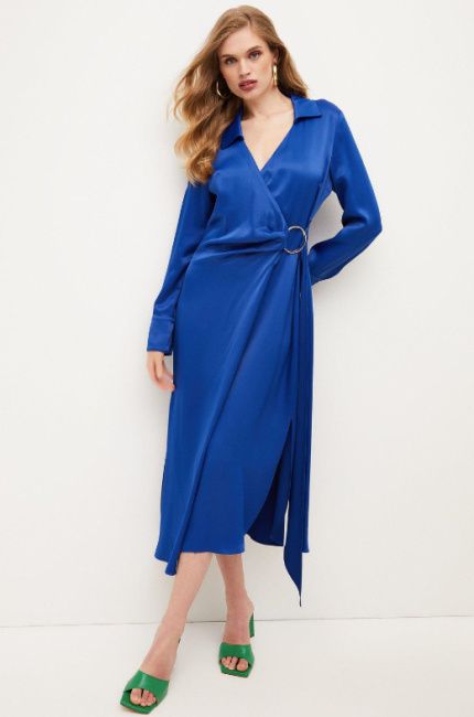 Satin Back Crepe Wrap Midi Dress was £189 now £76, Karen Millen