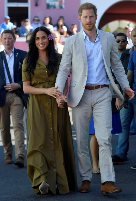 Duchess Meghan is a fan of Staud – here she wears a shirt dress by the label in South Africa with Prince Harry