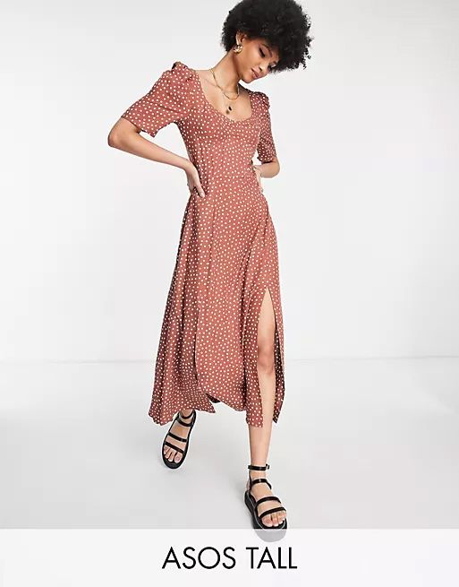 Tall Brown Polka dot cupped maxi dress, £28 / $40, ASOS