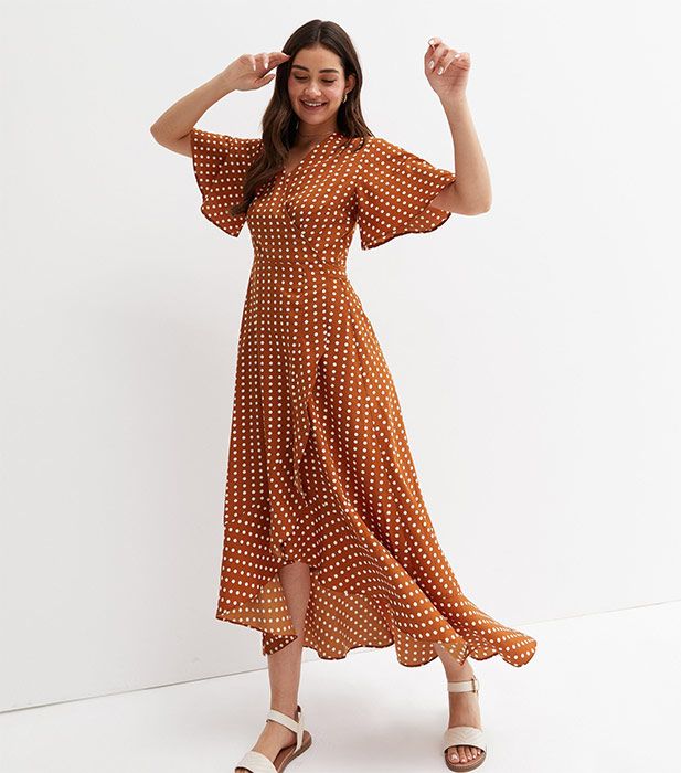 Brown Polka dot midi shirt dress, £42 / $80 River Island