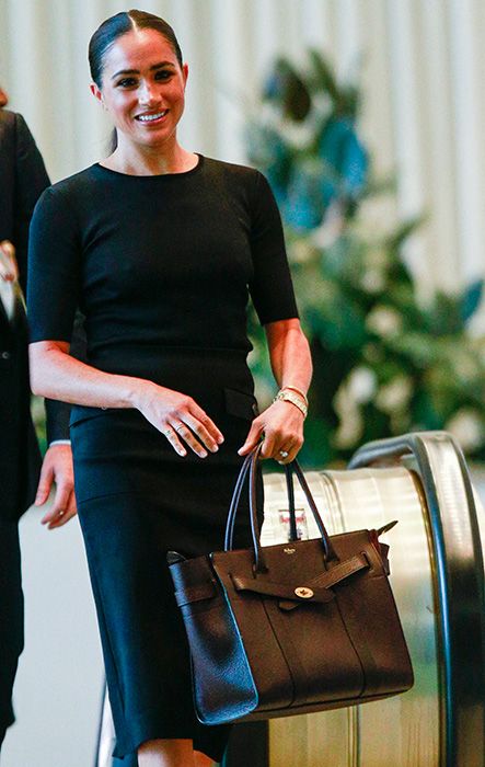 Meghan Markle joined her husband for this special presentation, wearing a super chic black pencil skirt with bold pockets on the hips by Givenchy, a black top and smart black heels. Stunning! The former Suits star wore her hair in a a incredibly slick ponytail and immaculate makeup highlighted her stunning features.