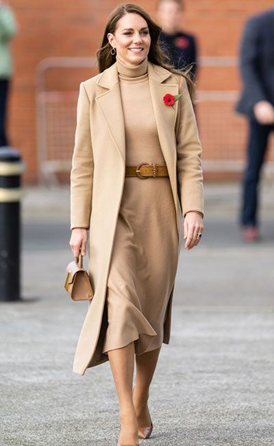 Princess Kate layered an on-trend camel coat over a knitted midi dress