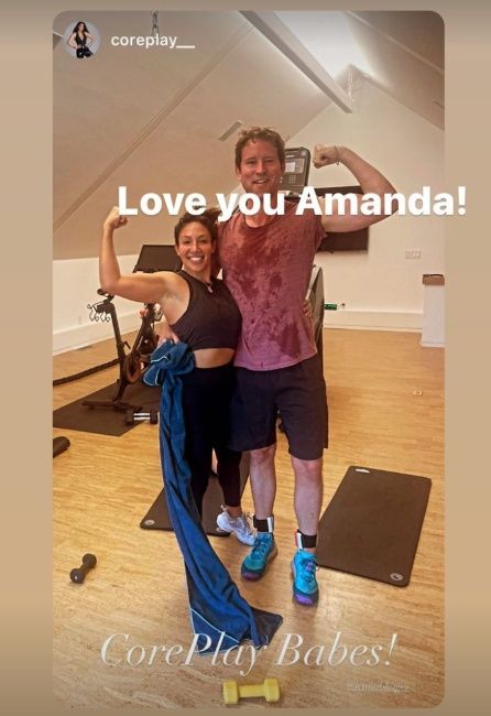 Amanda also posted a series of videos from the workout session, which showed the husband and wife doing dumbbell punches in a fitness studio as well as running laps around a tennis court.